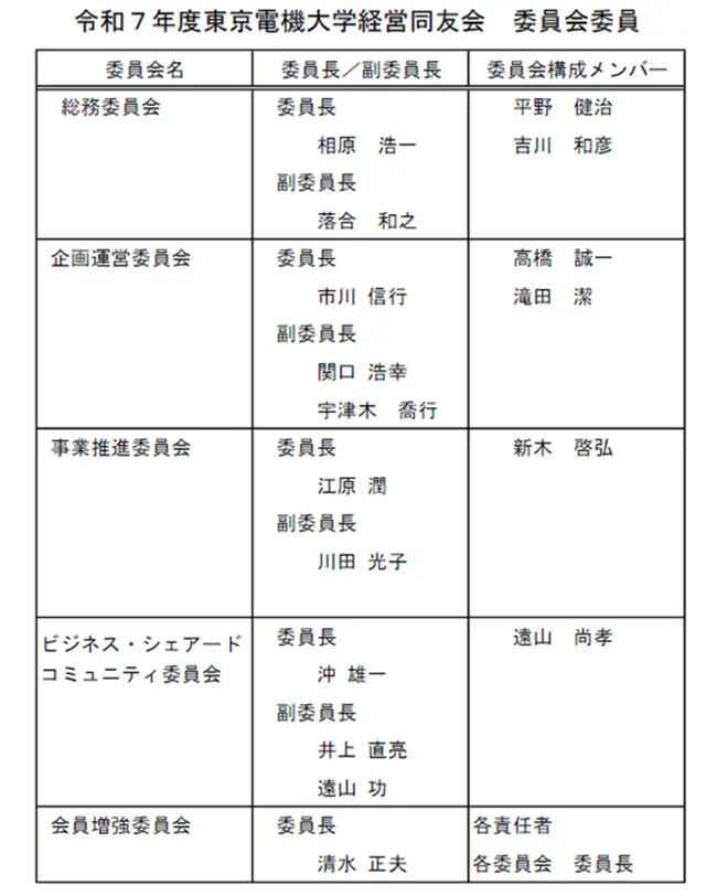 知識や経験を共有し合い、互いに切磋琢磨することが、これからの社会において求められる「学び続ける姿勢」につながります。当会では、会員活動のさらなる活性化を図り、著名人による講演会や研究紹介、経営者向けセミナーを通じて、企業経営の視点を深める機会を提供してまいります。また、在校生との交流をより強化し、未来を担う人材の育成を支援するとともに、独立・起業という選択肢を広げるための環境づくりにも注力していきたいと考えています。