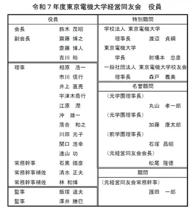 東京電機大学経営同友会は学校法人東京電機大学の設置する学校を卒業した企業経営者や経営経験者を主体として{学園と産業界協同のネットワークを組織し、相互の連携を深め、科学技術とビジネスの振興を推進する}という基本方針のもと多様な活動を行っております。